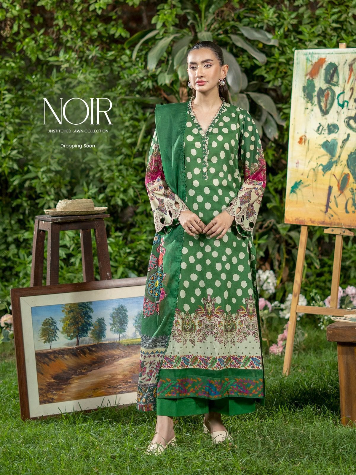 Embrace timeless grace with the NOIR Printed Unstitched Lawn Suit – A perfect blend of elegance and comfort, featuring vibrant prints on premium lawn fabric. Ideal for any summer occasion. – exclusively at Herbazar.pk. This 3-piece masterpiece blends sophistication with seasonal charm, crafted for women who value elegance and individuality.